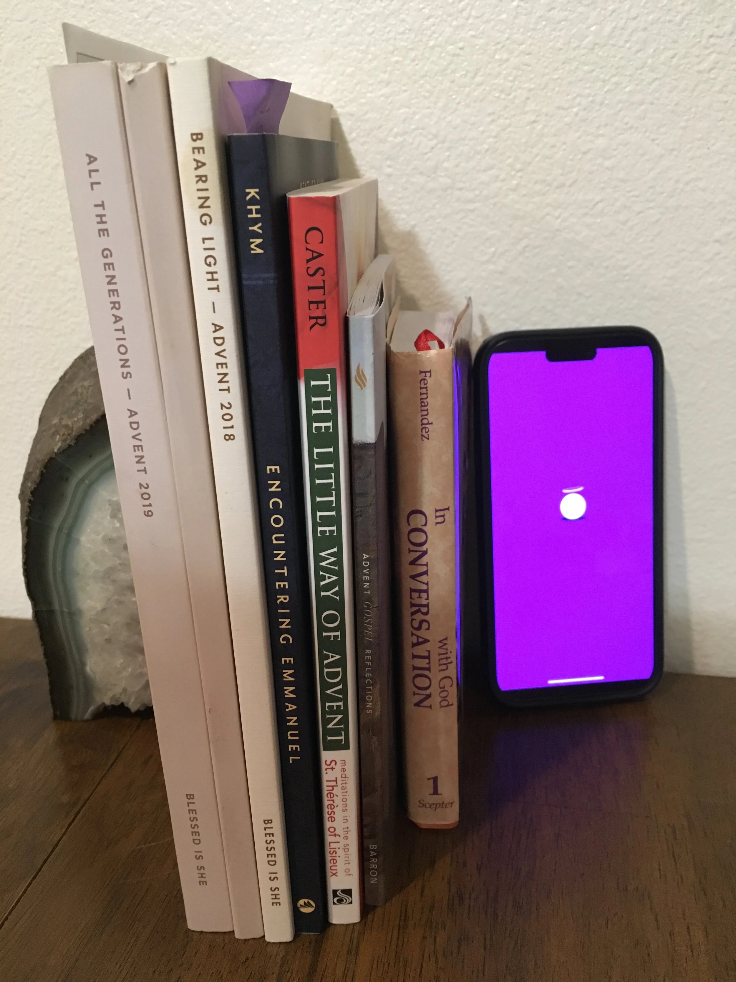 Try to add some prayer to your day during Advent. There are a lot of great books out there that can help you through Advent. Blessed is She, TAN, Ave Maria Press, Bishop Barron, Magnifícat, In Conversation with God. Or if you want to watch some short videos with reflection, try Dynamic Catholic